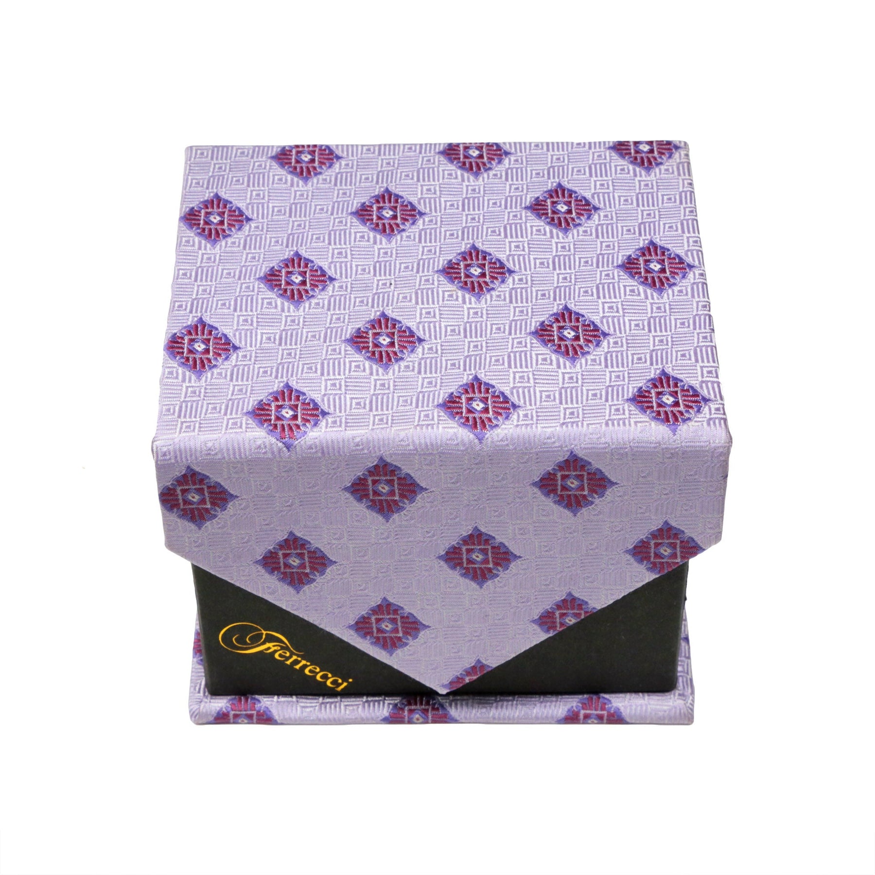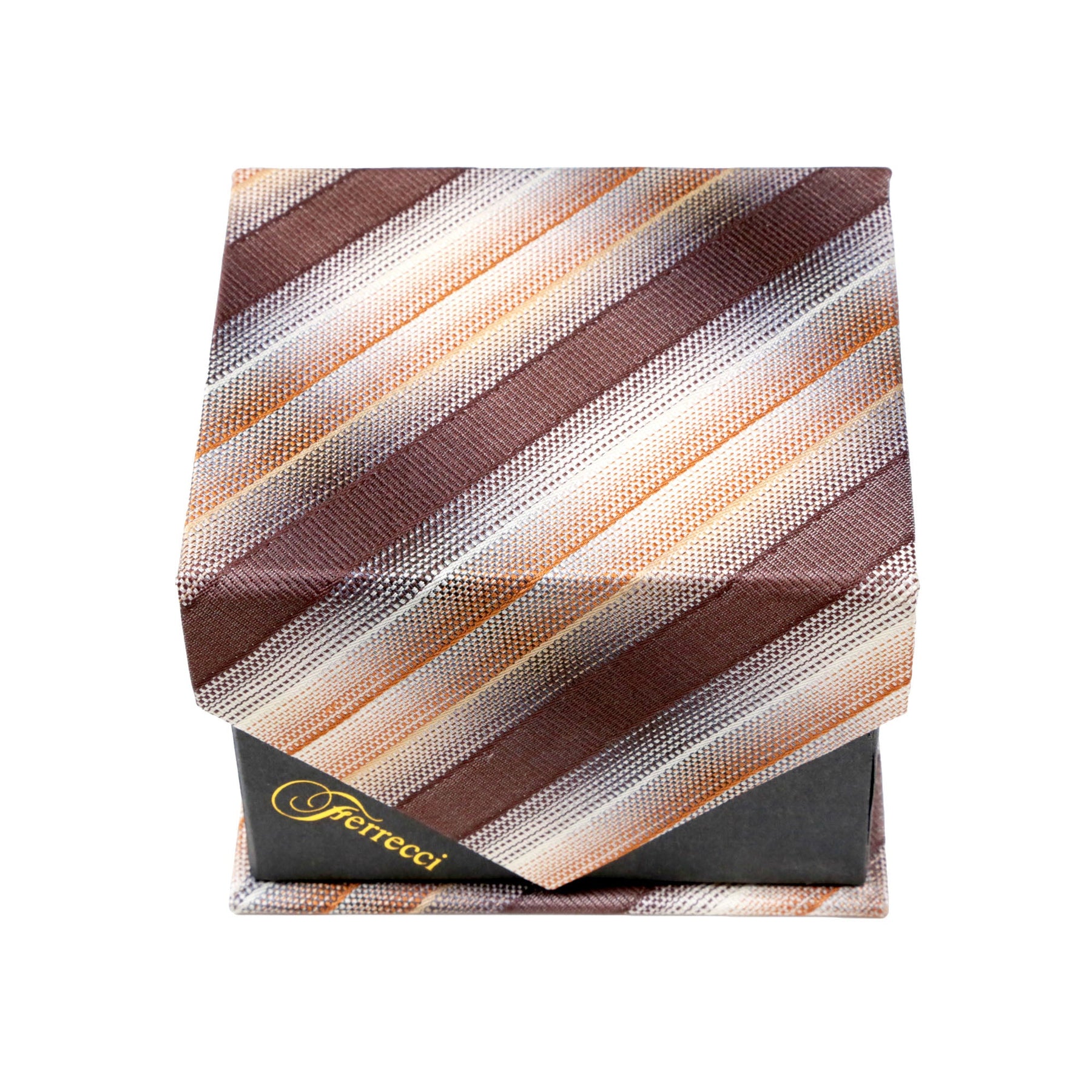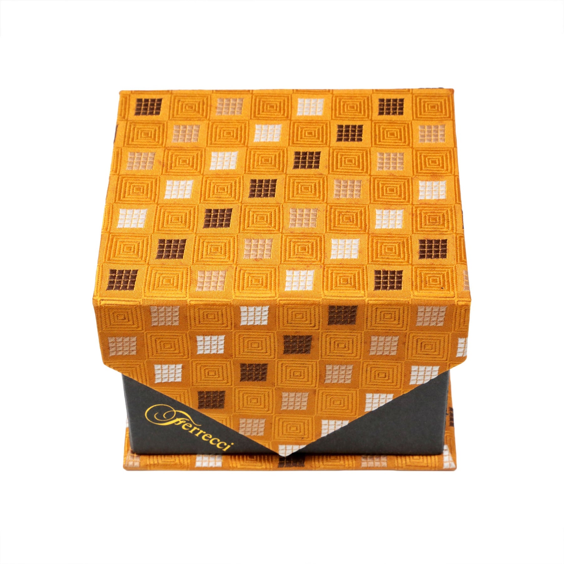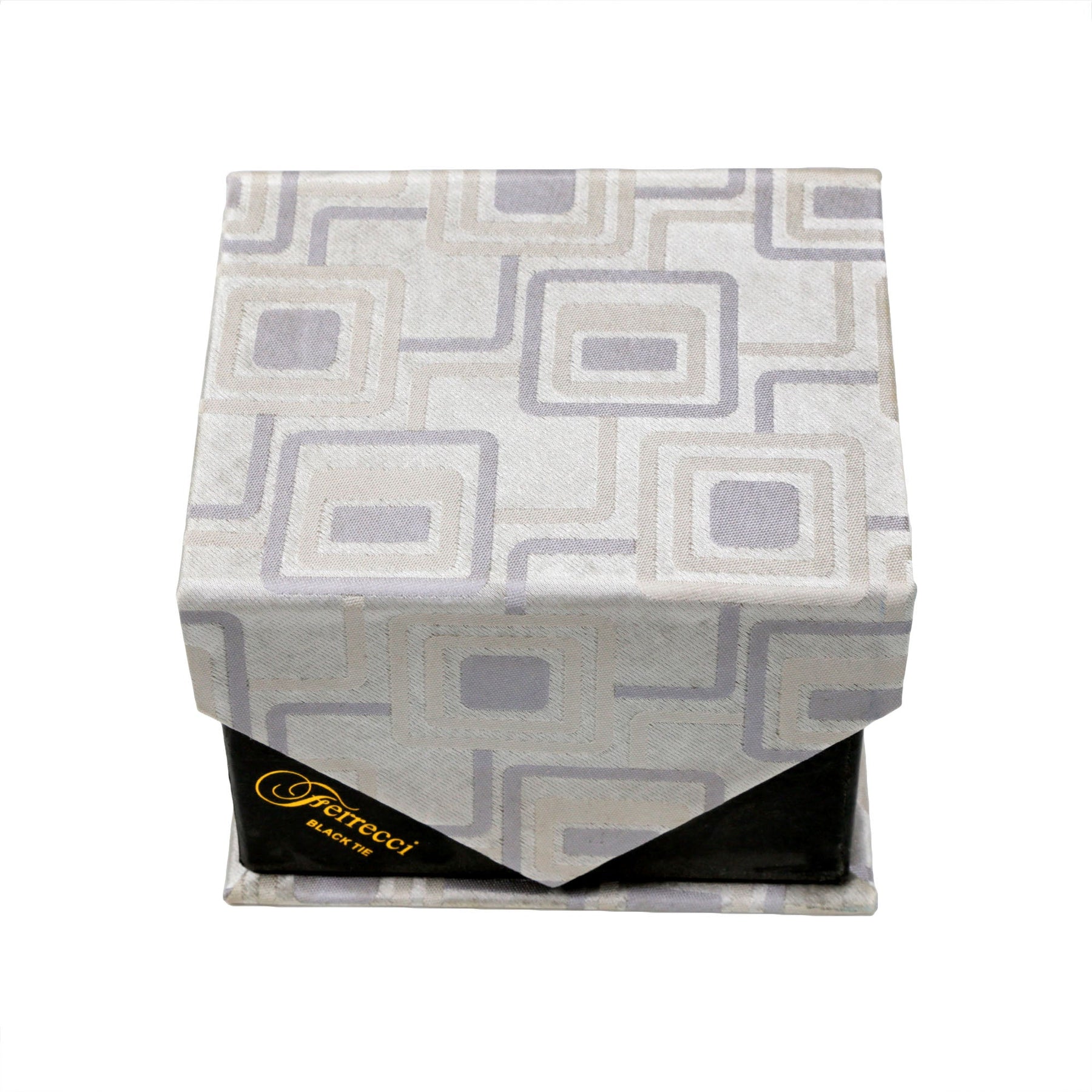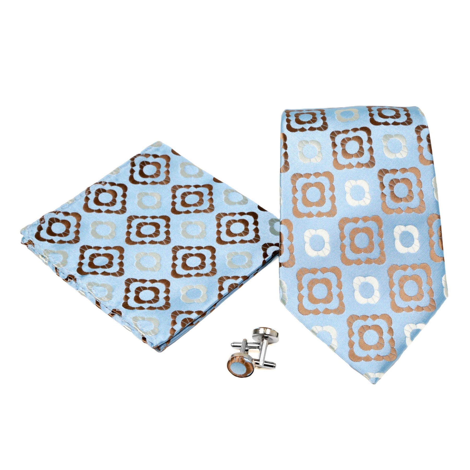 Men's Beige/Brown Square Geometric Pattern Design 4-pc Necktie Box Set