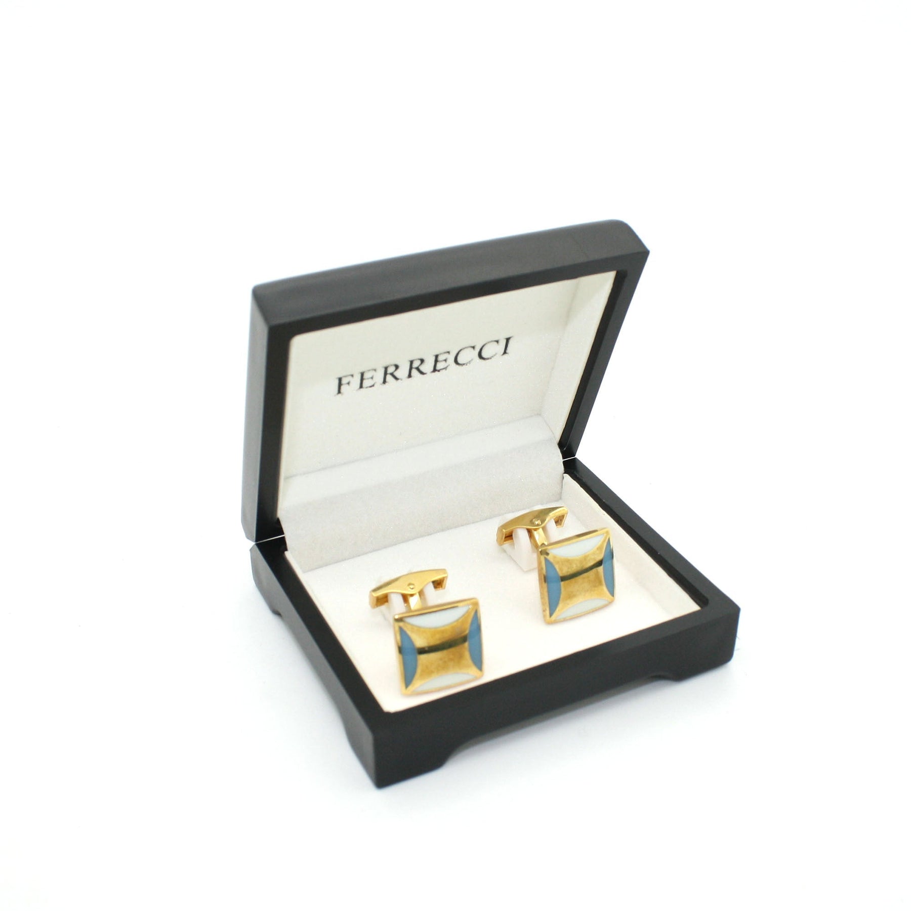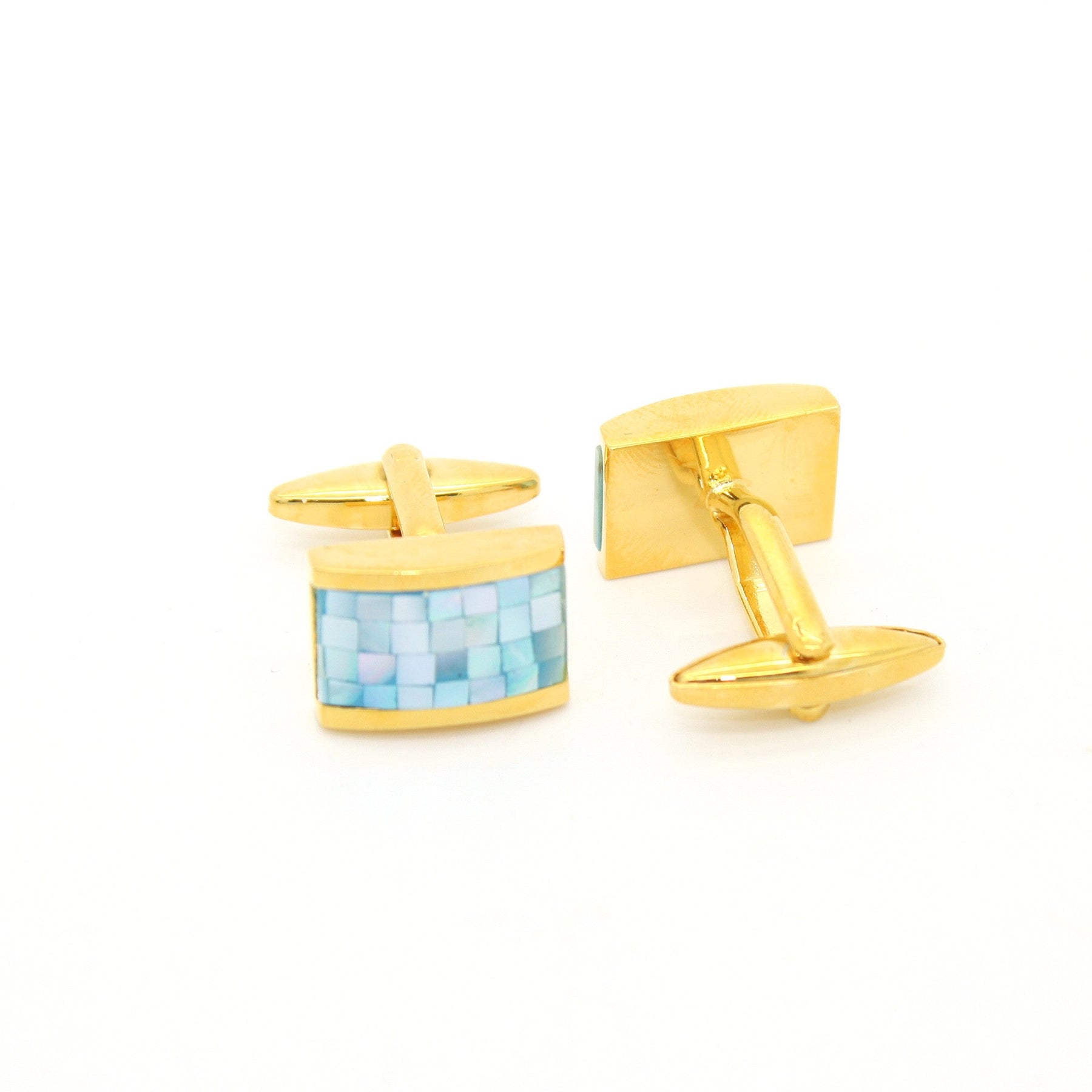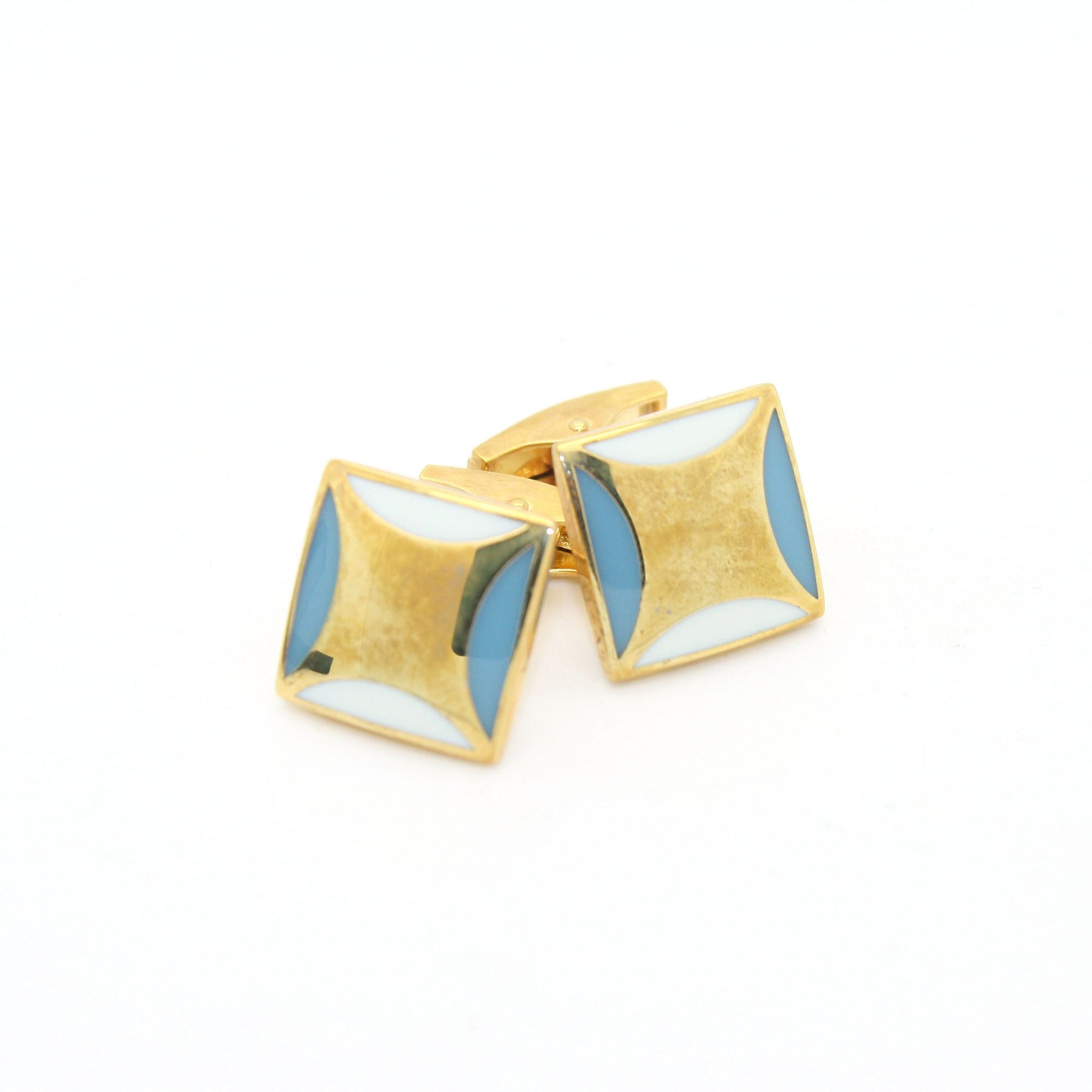 Goldtone Aqua Blue Criss Cross Cuff Links With Jewelry Box