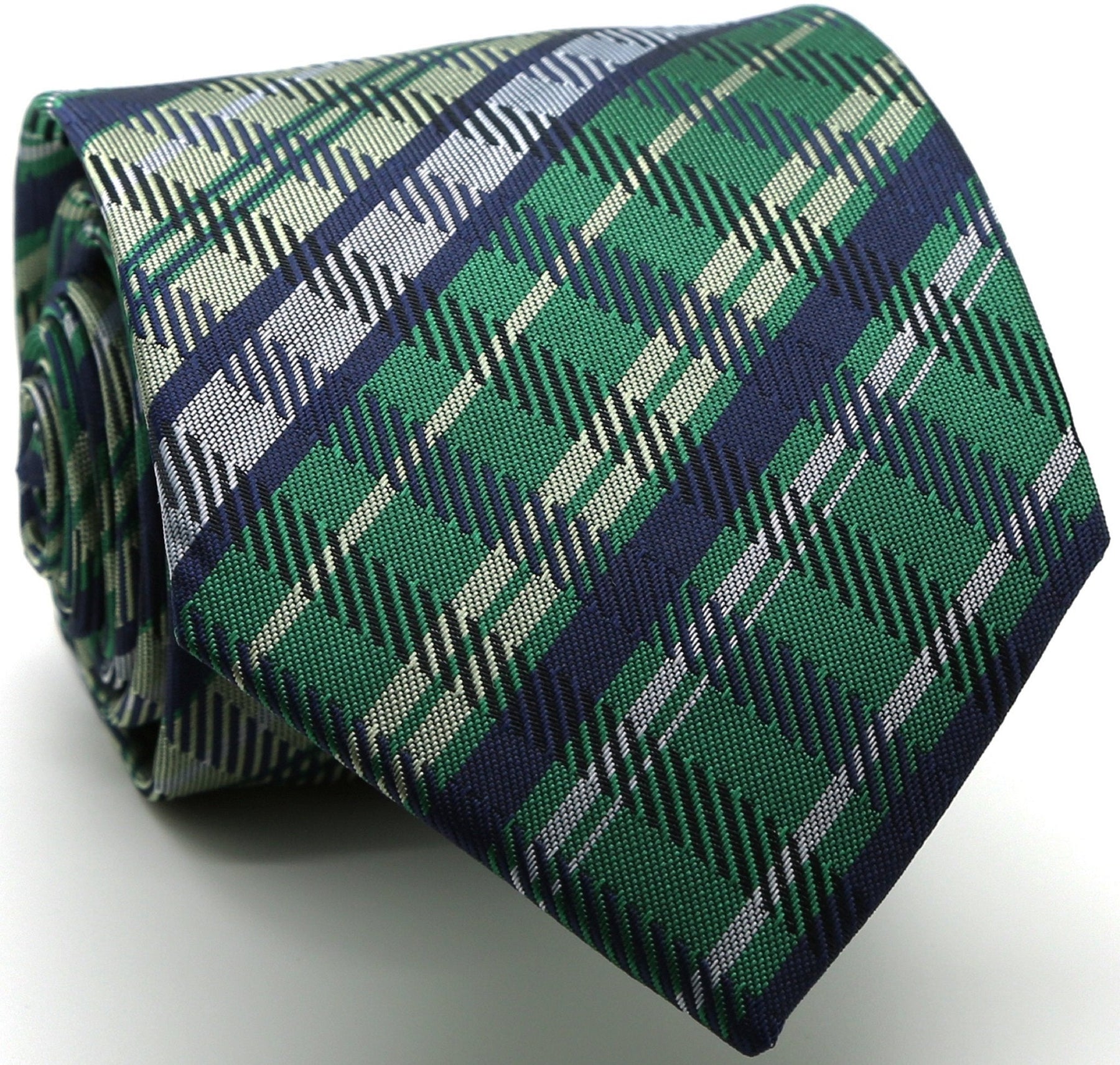Regular price $ 15.00Mens Q-2 Green Striped Necktie Set. These fashionable neckties in many colors are perfect for men to wear with a suit or with a dress shirt in formal or business casual attire. Made of 100% microfiber each tie comes with a matching pocket square hanky. This is the perfect tie set to give your dad, uncle, step dad or grandfather as a gift. Each tie is 3.5 inches wide at the widest part of the base and 59 inches in total length when untied. Great for weddings, parties, costumes, uniforms, school teachers, police and more.