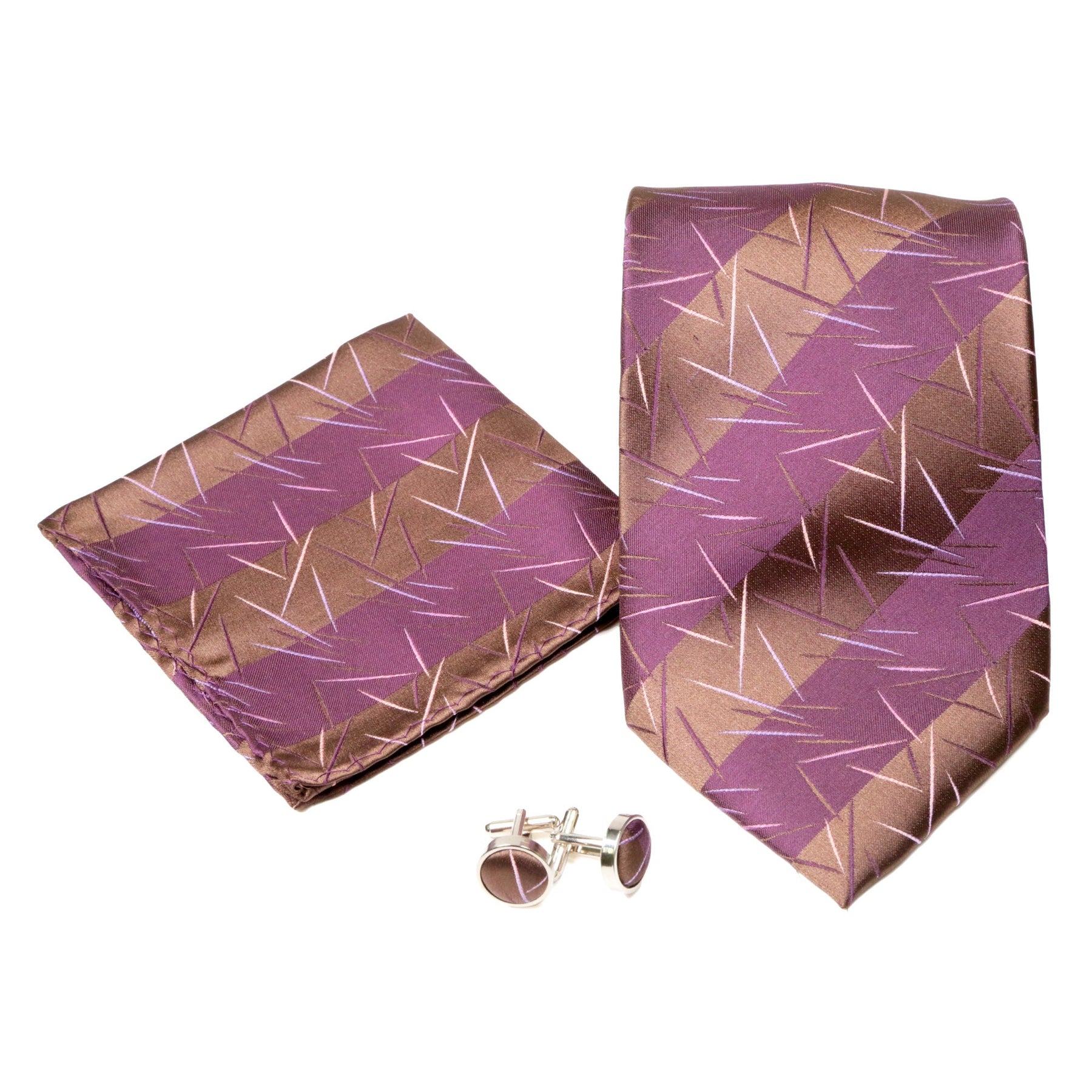 Men's Purple Brown Scattered Striped Design 4-pc Necktie Box Set