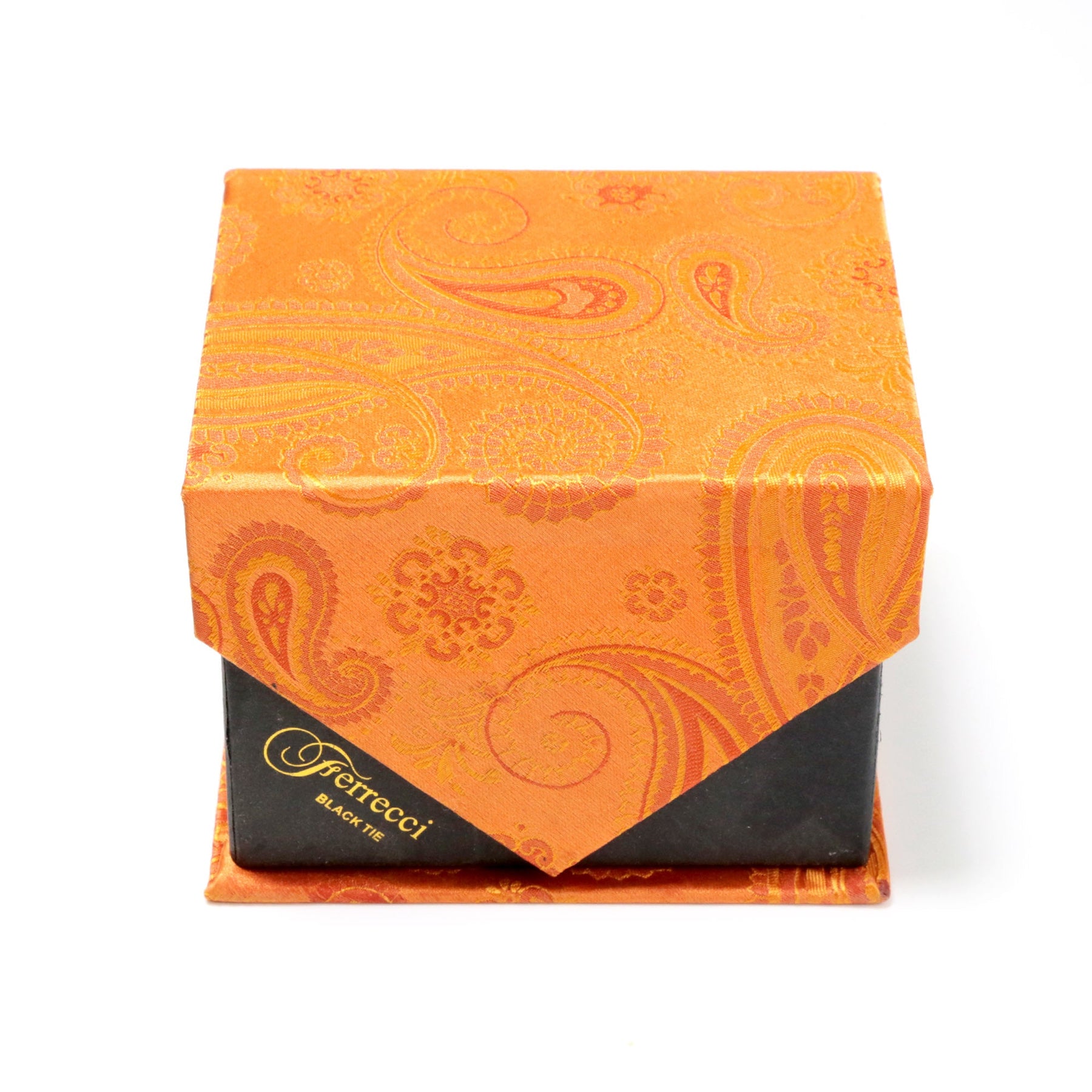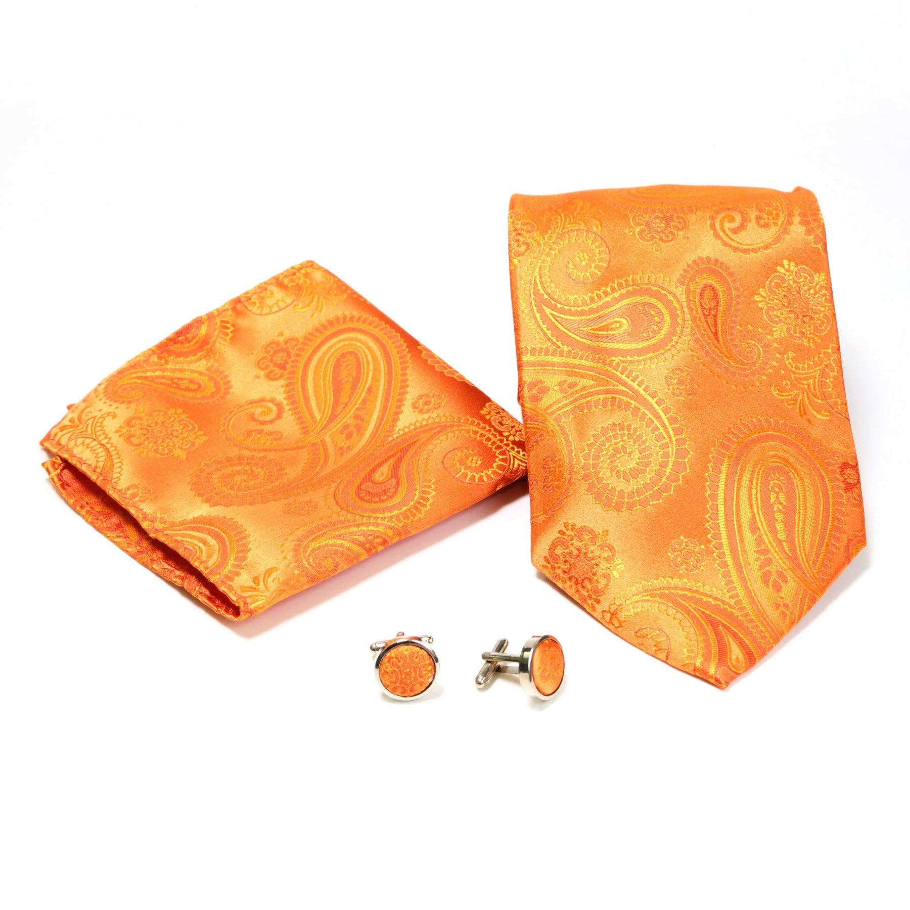 Men's Radiant Orange Paisley Geometric Design 4-pc Necktie Box Set