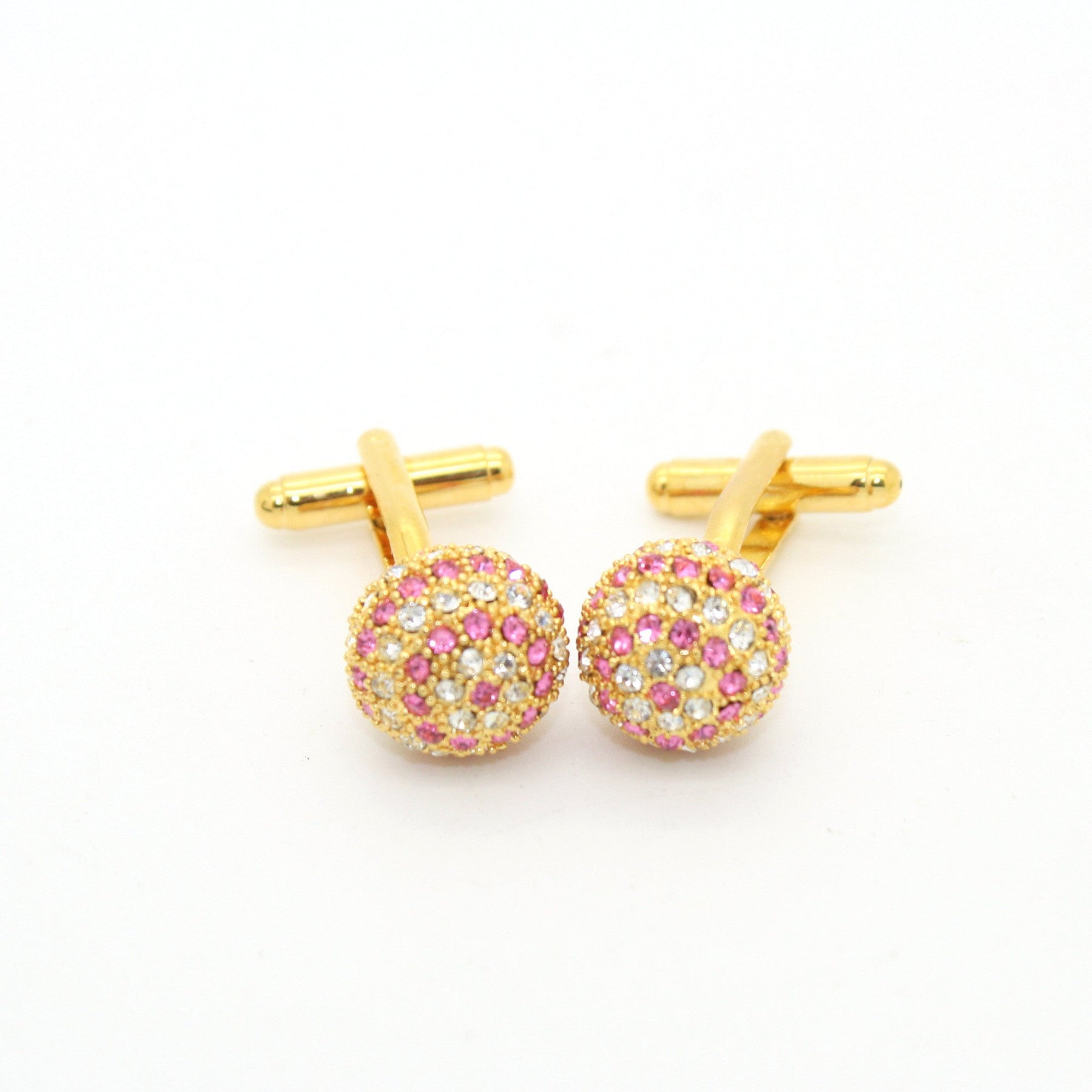 Goldtone Pink Gemstone Cuff Links With Jewelry Box