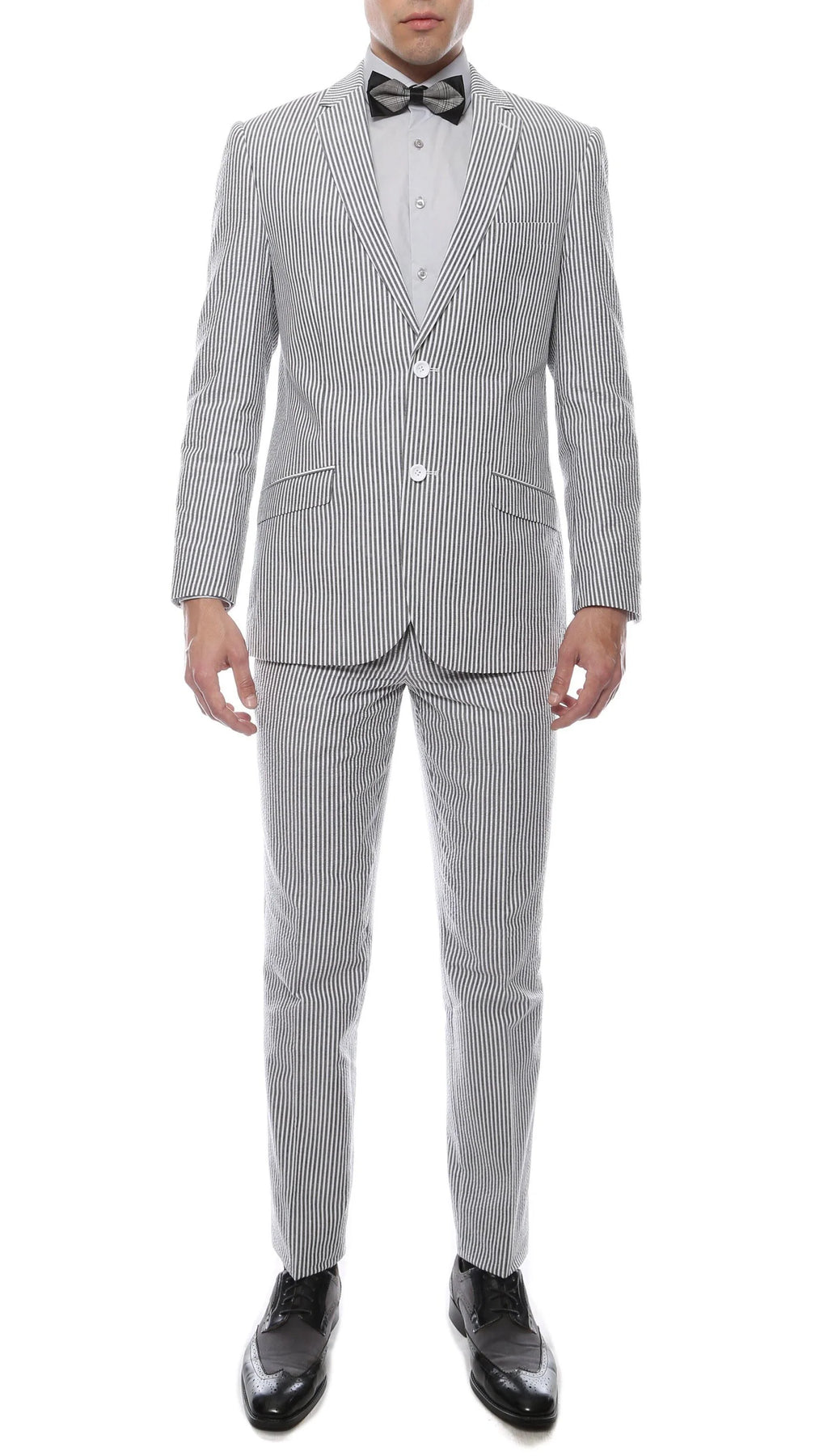 Men's Slim Fit Two Button Black Seersucker Suit
